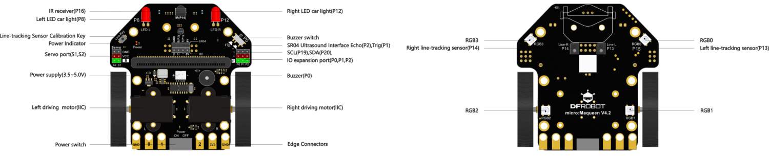 The Maqueen is a two wheeled robot that accepts a micro:bit for control. Despite its compact size, it comes with lots of hidden features onboard and expansion capability.