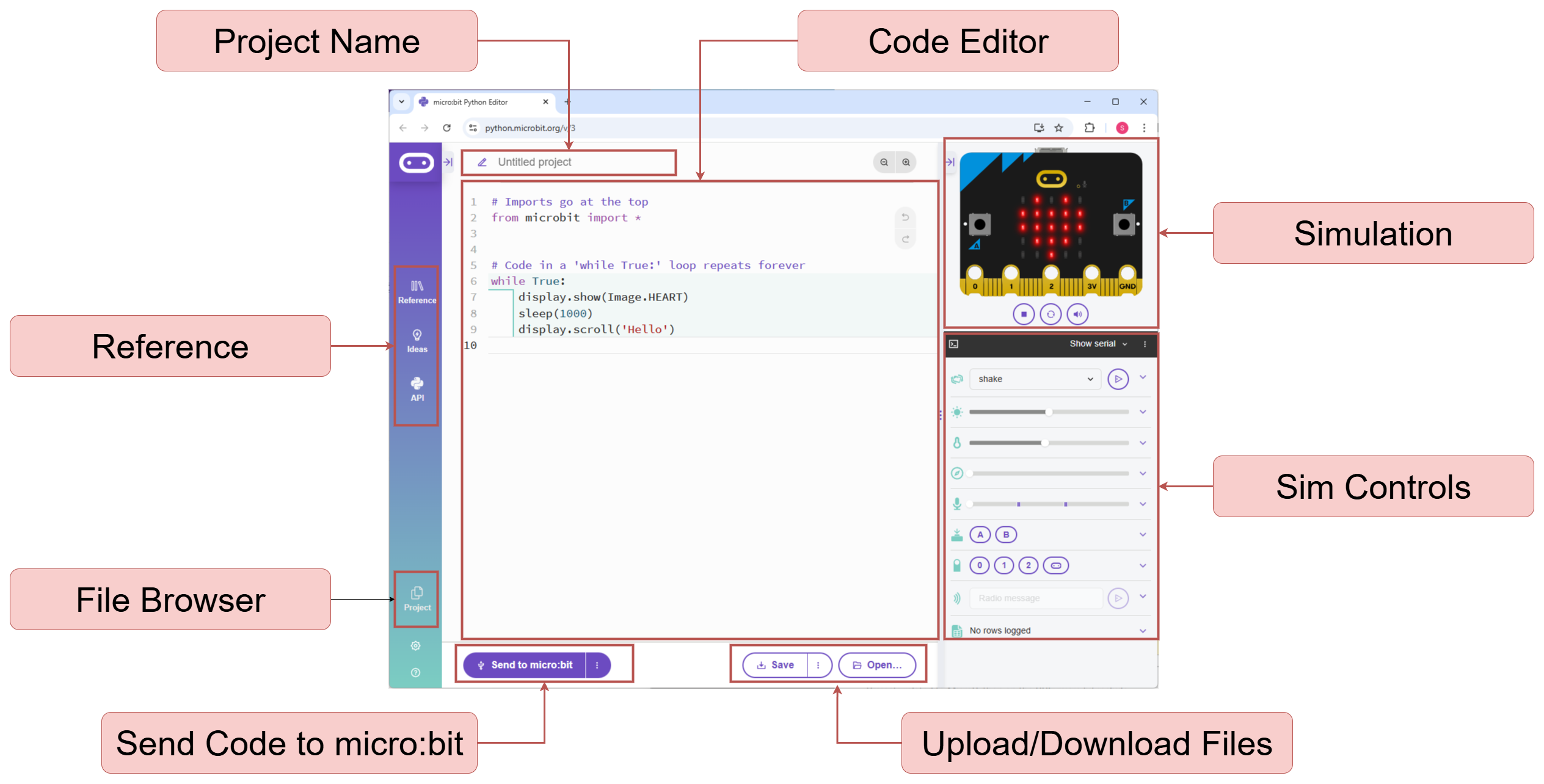 Navigate to the MicroPython editor https://python.microbit.org/v/3. If you already have it open, then use that existing window or tab.