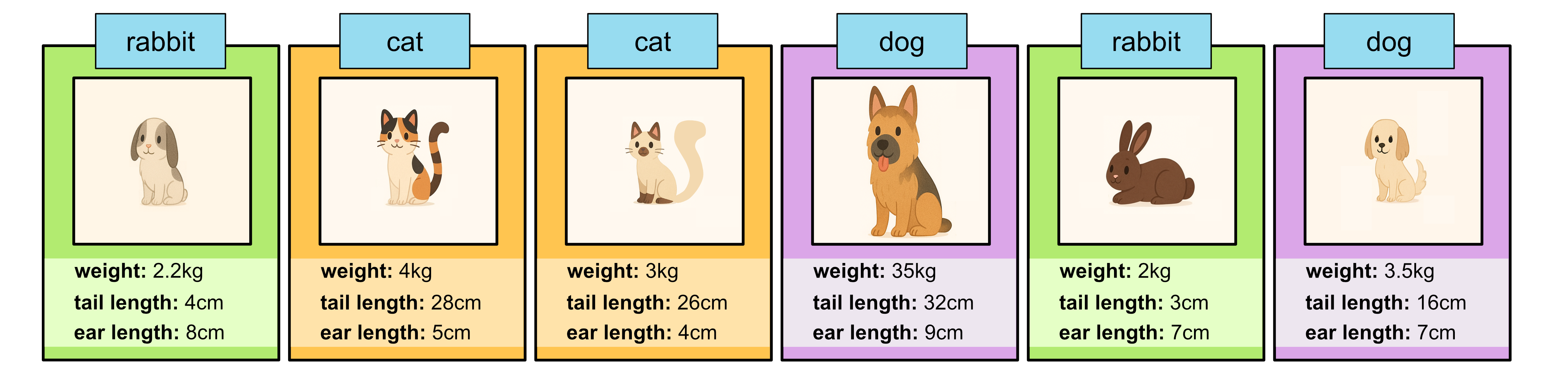 Our goal is to build a classification tree that can be used to separate out the 3 classes: rabbit, cat, dog.