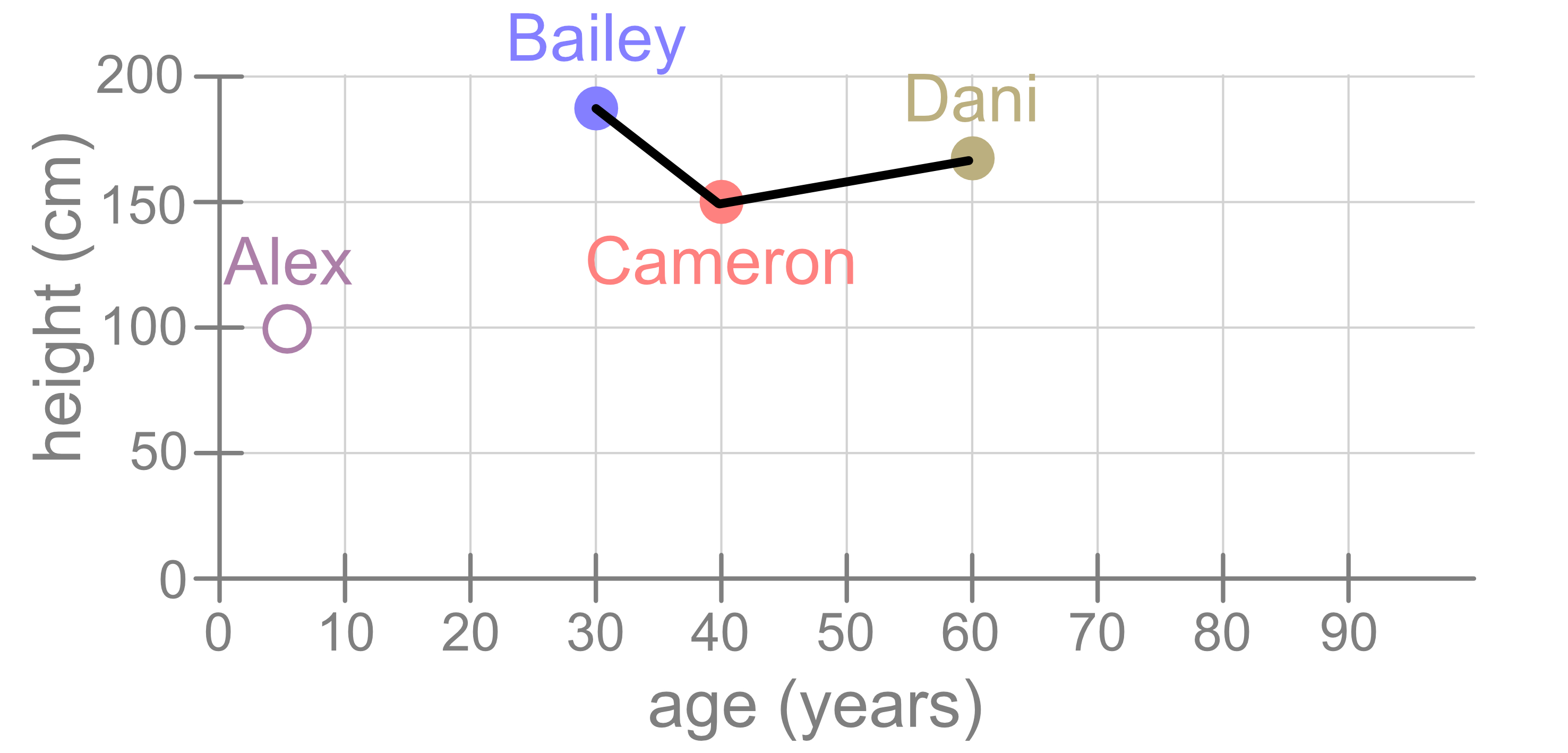 As we just saw, we can use distance between points as a way to measure the similarity of the samples. Using the same dataset as before, let’s ow consider Bailey. Judging from this figure, Bailey is more similar to Cameron than they are to Dani, and that’s because the distance between Bailey and Cameron is smaller than this distance between Bailey and Dani.