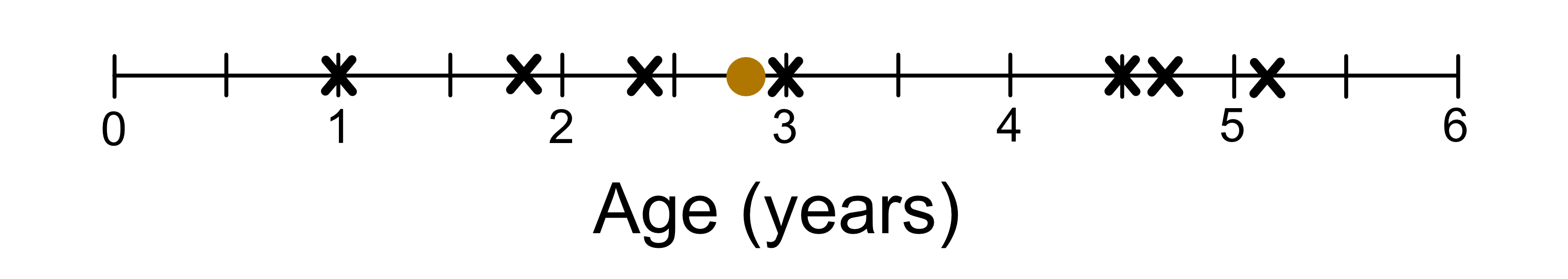 Now the way a KNN regression model makes a prediction is that it looks for the closest sample in the training data. For example, let’s say we wanted to predict the height of a giraffe who was 2.8 years old. The information we have on our unknown giraffe is just it’s age. If we were to plot just the age information it would look like this: